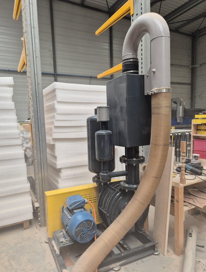 - Aspiration des copeaux avec aspirateur industriel 4KW (Capacité : 100 litres)